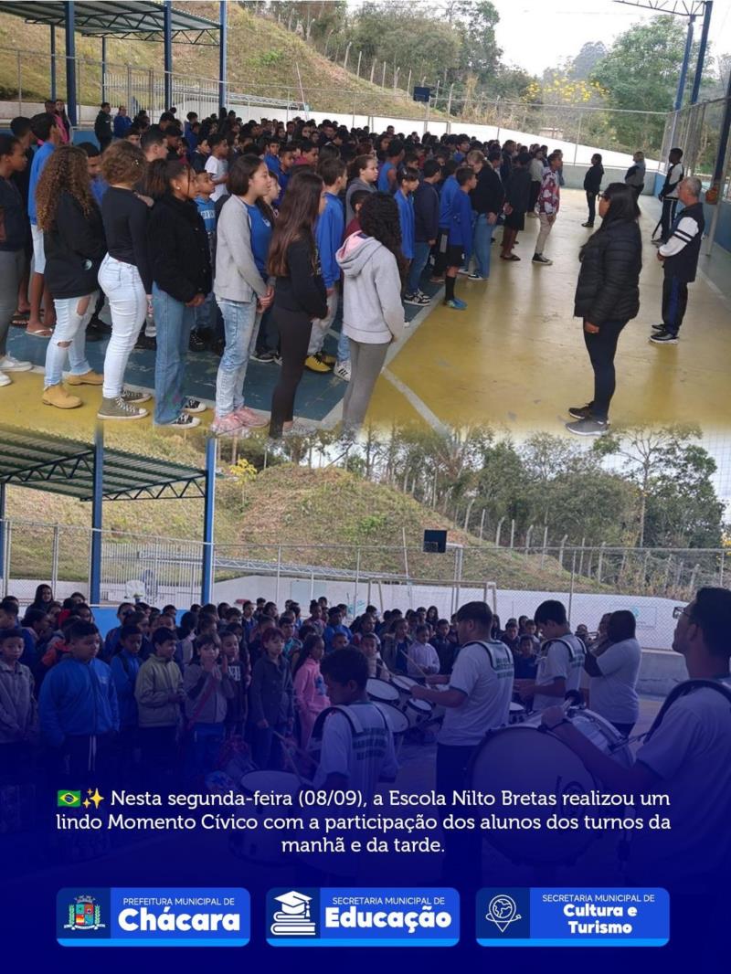 ✨ Nesta segunda-feira (08/09), a Escola Nilto Bretas realizou um lindo Momento Cívico com a participação dos alunos dos turnos da manhã e da tarde.