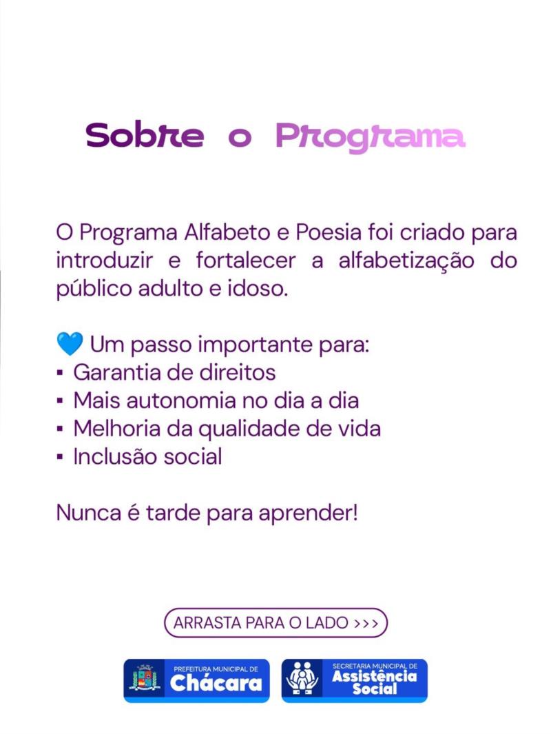 #PrefeituraDeChácara #AssistênciaSocial #AlfabetoEPoesia #EducaçãoParaTodos #InclusãoSocial
