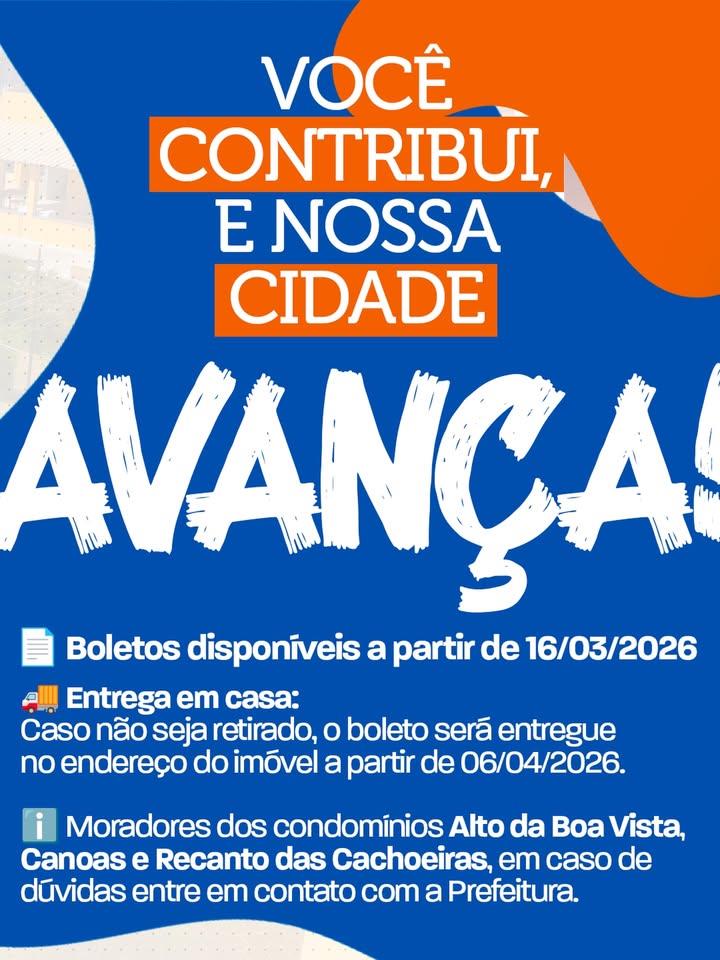 Caso o contribuinte não realize a retirada, o boleto será entregue no endereço do imóvel a partir do dia 06 de abril de 2026.